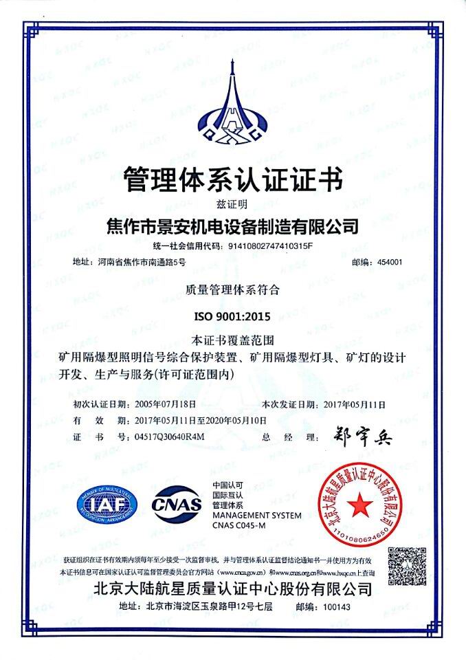 焦作景安公司始終堅持“以科技為先導,以市場為導向”的發展戰略,不斷進行新產品的研制和開發,在國家“六五”到“九五”期間,承擔和參與了國家多項科技攻關項目。并被中國電器工業協會評定為“質量可信產品”。特別是在礦用防爆燈領域,礦用隔爆型半導體(LED)照明燈具,2008年列入國家火炬計劃,獲2009年河南省工業和信息化廳的科技成果二等獎,并擁有多項國家專利。 |